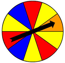 Create two different spinners with different colours. You can make one out of eighths and fours for example. This example is divided into tenths. You can colour them in any colour. Then you can play with a partner or yourself and choose specific colours.